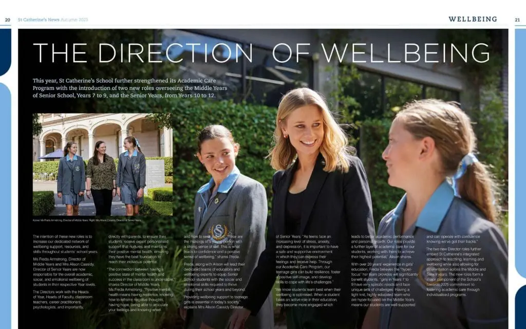 Our long-standing partnership with St Catherine’s School, a prestigious girls’ school in Toorak, Melbourne, has allowed us to capture a wide array of their activities against a backdrop of historic and scenic grounds. Our annual photography campaign refreshes their marketing materials, including website and print content, alongside event and public relations photography. Collaborating closely with their teams, we create images that resonate with their vision and capture the school’s unique spirit.